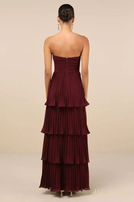 Plum Purple Strapless Tiered Maxi Dress