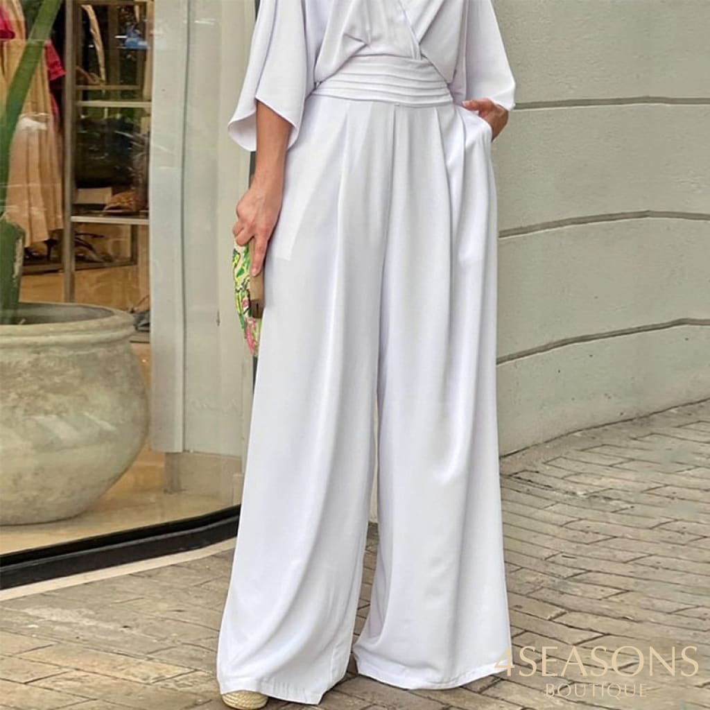 Wefads Women Jumpsuit Summer Short Bat Sleeve V Neck Backless Nipped Waist Loose Wide Legs Casual