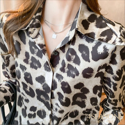 Animal print chiffon shirt, with buttons, collar and cuffs.